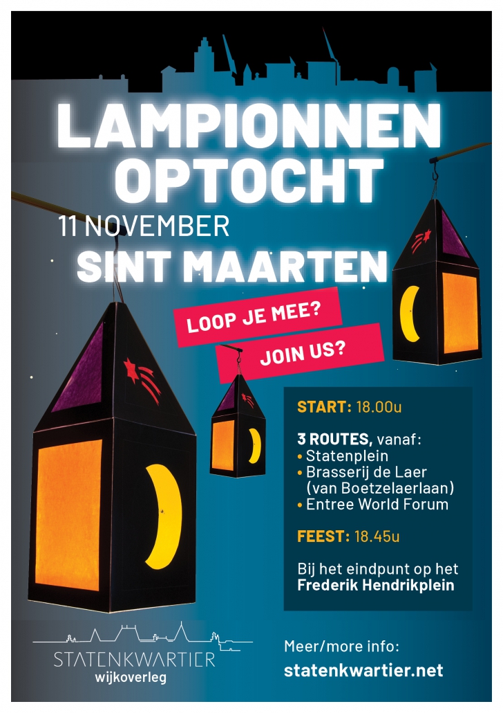 Op 11 november is het weer zover: Sint Maarten in het Statenkwartier! Kinderen lopen langs de huizen met hun lampionnen en verzamelen snoep.
