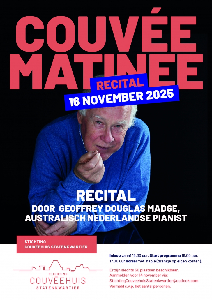 Stichting Couvéehuis Statenkwartier organiseert i.s.m. Wijkoverleg Statenkwartier en Welzijn Scheveningen een recital door Geoffrey Douglas Madge!