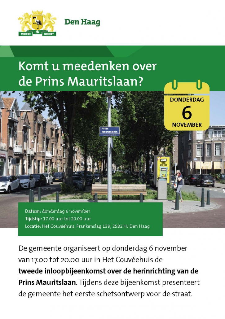 6 nov: Inloopbijeenkomst Prins Mauritslaan