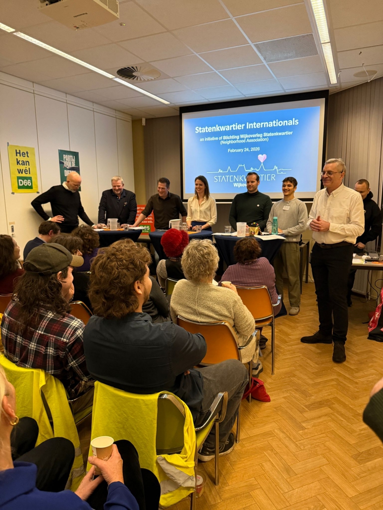 On February 24, the Couvéehuis was buzzing with energy as around 90 international residents gathered for a truly special evening: the first English-language municipal election debate of this kind in The Hague. Organized by the Working Group Statenkwartier Internationals of the Stichting Wijkoverleg Statenkwartier, the event marked an important step in ensuring that the many international residents of our neighborhood are informed, engaged, and heard.