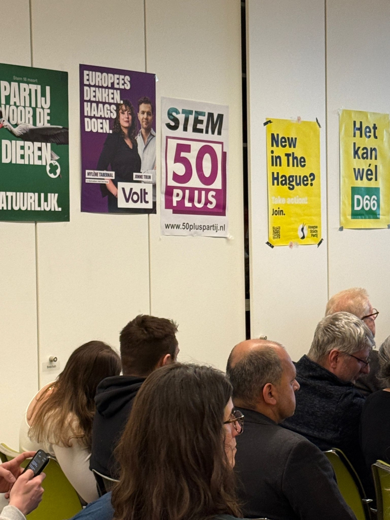 The discussions were substantive and concrete. Candidates addressed pressing local issues such as the rise in homelessness in the Scheveningse Bosjes, accessibility challenges following the Hubertustunnel closure and zero-emission zones, speeding and traffic enforcement concerns, affordable housing, access to sports and community spaces.