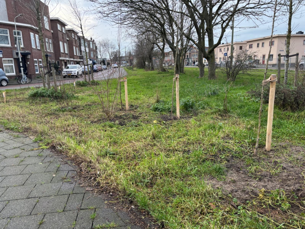 Struiken en bomen komen uit verschillende hoeken. Duurzaam Den Haag levert bomen. De gemeentelijke groenbeheerder stelt bloembollen beschikbaar. Het Wijkoverleg draagt fruitstruikjes bij. Ook komen er seringen uit een buurttuin waar ze te groot zijn geworden.