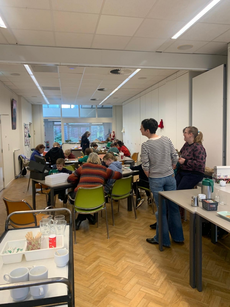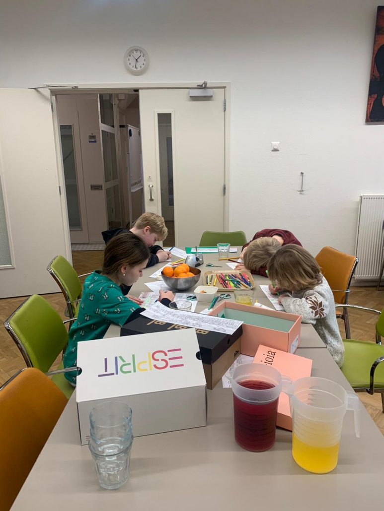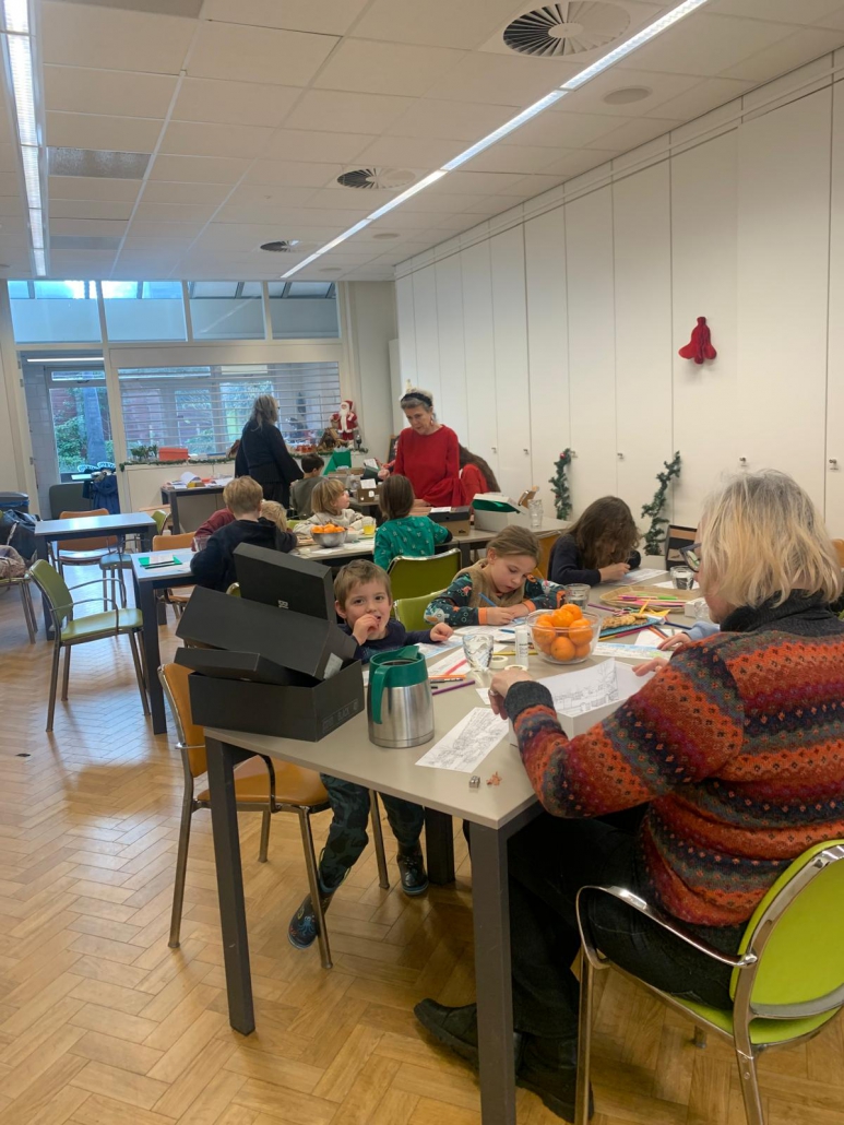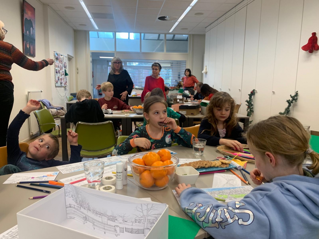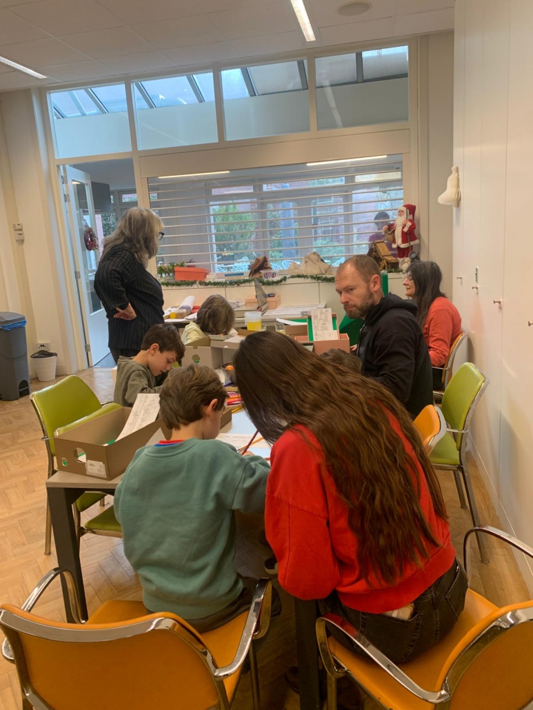 Op 22 december vond in het Couvéehuis een bijzonder creatieve middag plaats. Zeventien enthousiaste kinderen in de leeftijd van 6 tot 12 jaar gingen, onder begeleiding van drie zeer betrokken en creatieve vrijwilligers, aan de slag met het maken van hun eigen kijkdoos. Ook oma’s en ouders waren volop aanwezig en hielpen enthousiast mee. Zij bleven betrokken tot de omgebouwde schoenendozen helemaal af waren.