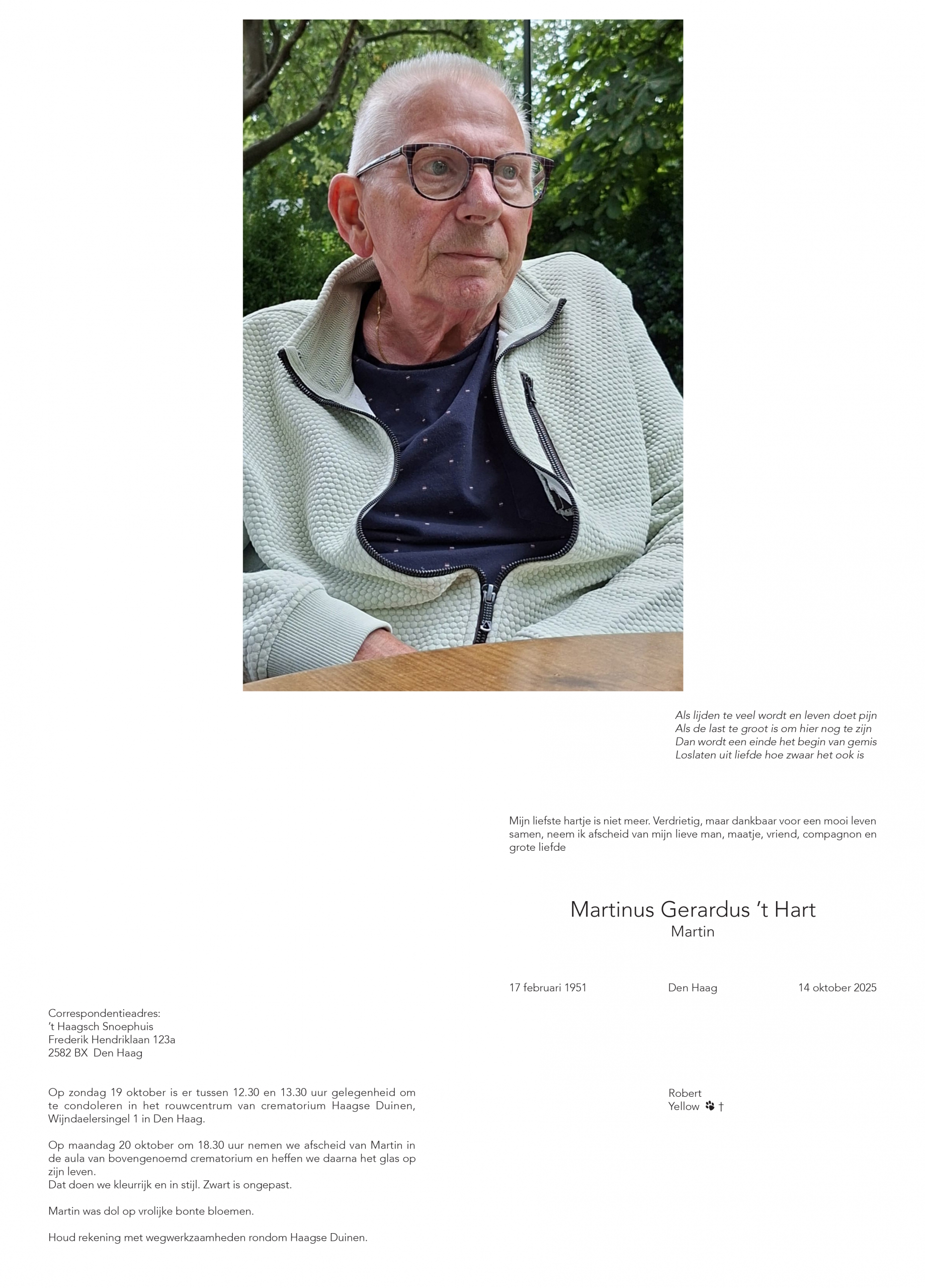 Bekend om zijn warme persoonlijkheid, zijn hart voor de buurt en zijn liefde voor mensen en het leven, laat Martin een blijvende herinnering achter bij iedereen die hem kende.