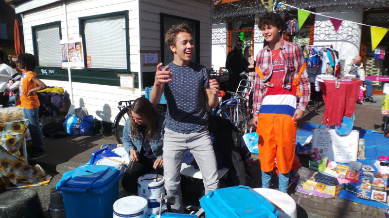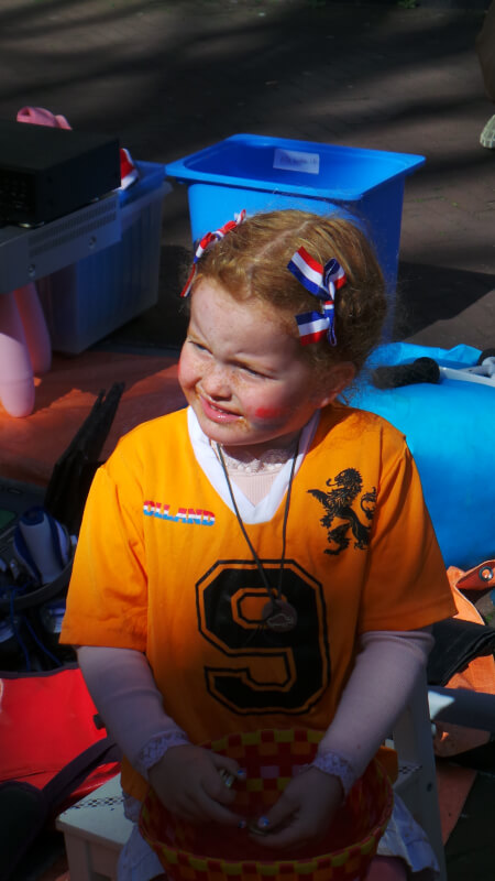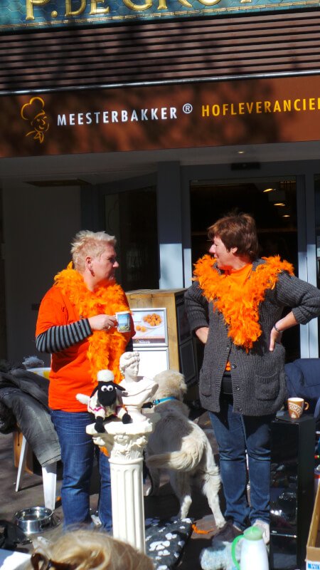 Voor de buitenlanders in onze wijk is Koningsdag ook een feest. Ik hoorde veel vreemde talen vandaag van mensen die er heel erg oranje uitzagen.