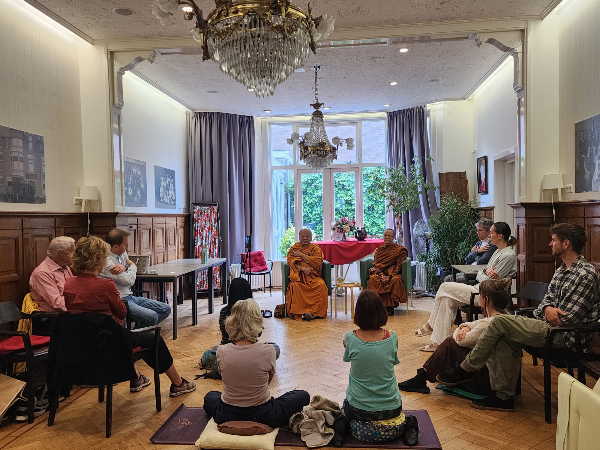 Op 6 juni vond er een bijzondere bijeenkomst plaats in de salon van het Couvéehuis, waar buurtbewoners de kans kregen om kennis te maken met de diepgaande lessen van Phra Ajahn Dr. Vimokkha. Deze gerespecteerde boeddhistische monnik en abt van Wat Pipphalivanaram in Thailand leidde een meditatie workshop onder de titel “Turning Inwards and Seeing into the Nature of Mind”.