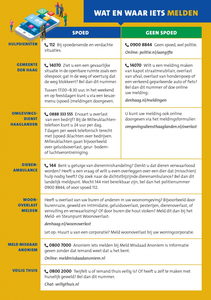 Weet je niet altijd waar je een melding moet doen? Met deze handige A5 Meldingenkaart zie je in één oogopslag welk nummer je moet bellen bij spoed, overlast of een gevaarlijke situatie. Print ’m uit en hang ’m op een zichtbare plek – op je koelkast, in de gang of op je werkplek – zodat je altijd direct de juiste informatie bij de hand hebt.