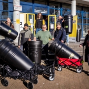 De regentonnen zijn beschikbaar in 110 of 200 liter en kunnen op diverse data in januari en februari 2026 worden opgehaald op verschillende locaties in de wijk. Let op: op = op en per huishouden kan één regenton worden aangevraagd.