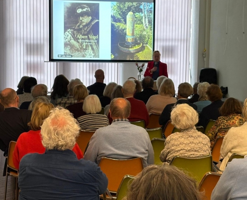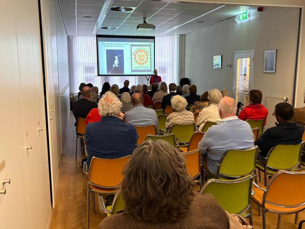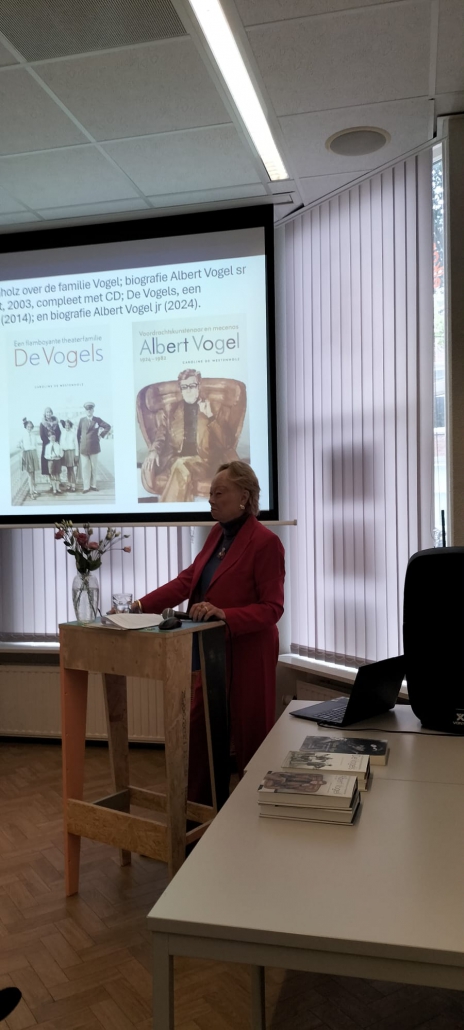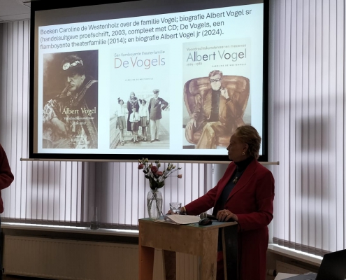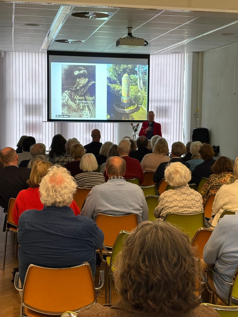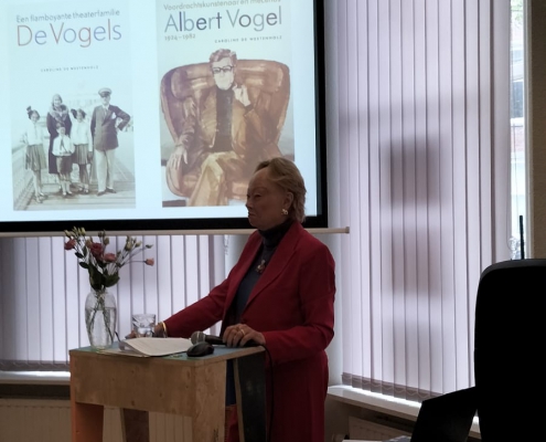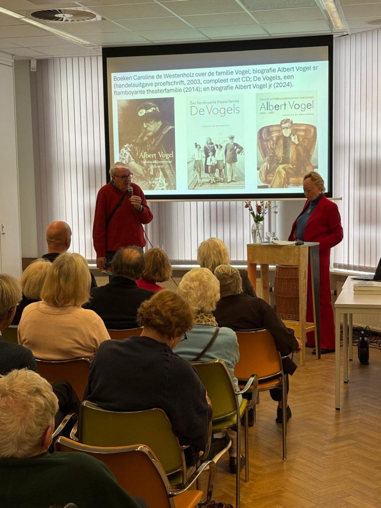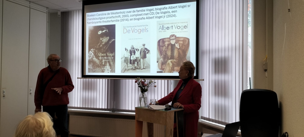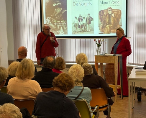 Op zondag 5 oktober verzorgde Caroline de Westenholz in het Couvéehuis een boeiende lezing over Albert Vogel en zijn bijzondere familie. Zo’n zestig bezoekers werden door haar op enthousiaste en indringende wijze meegenomen in het leven en de optredens van Albert Vogel sr., de Haagse voordrachtskunstenaar die het voordragen tot een ware theatervorm verhief en daarmee internationaal succes oogstte.