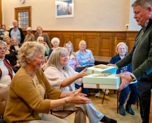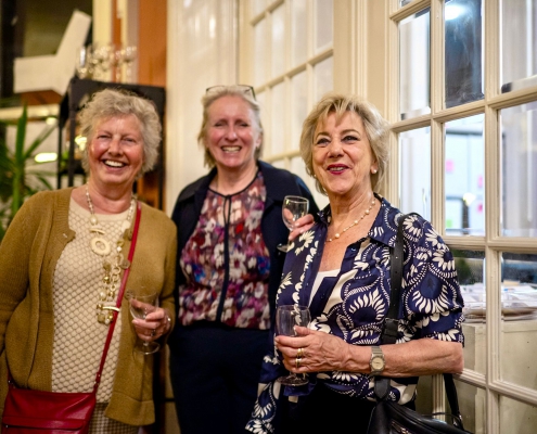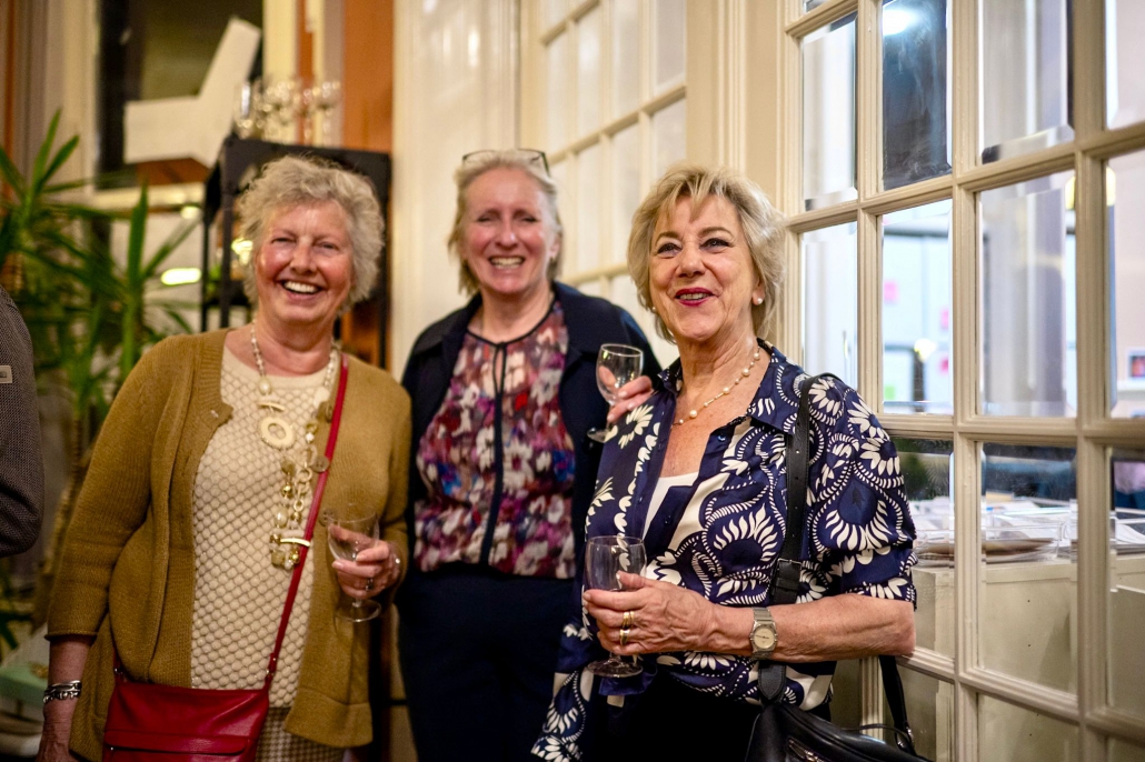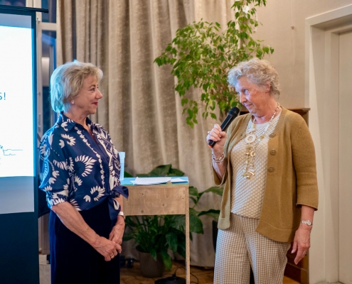 Na respectievelijk 8 en 12,5 jaar bestuur, namen we afscheid van onze voorzitter, Marjolein de Jong en bestuurslid Ontmoet en doet, Jolanda Letterie. Bestuurslid Rebecca van Leeuwen (Kunst en cultuur) hield de afscheidsspeech en Paul van der Harten bood namens het bestuur wijnglazen met het logo van het Wijkoverleg Statenkwartier erin gegraveerd en een goede fles rood aan.