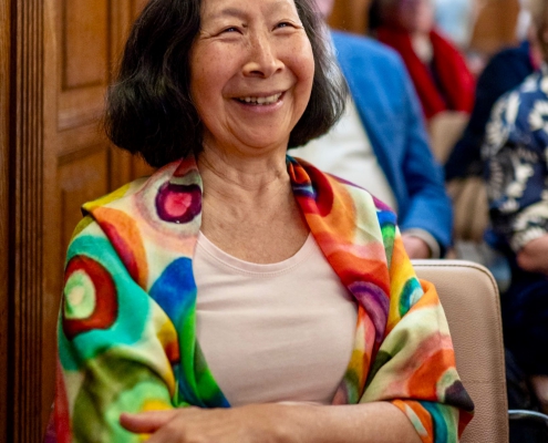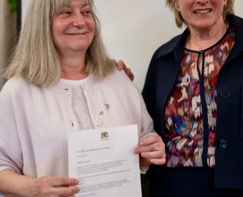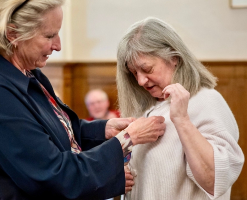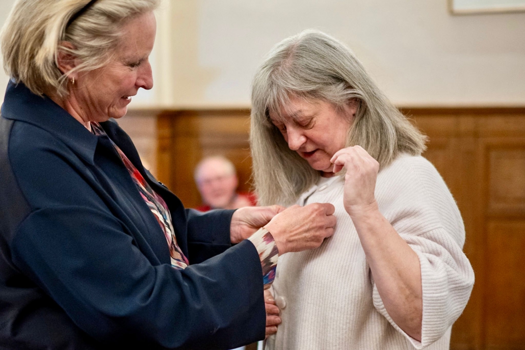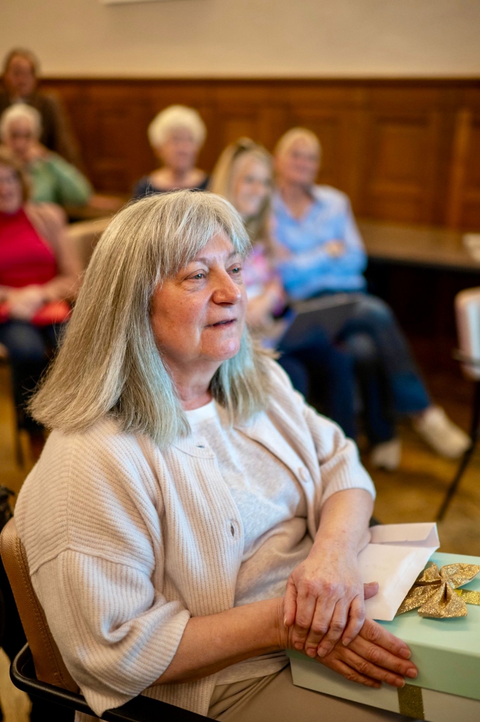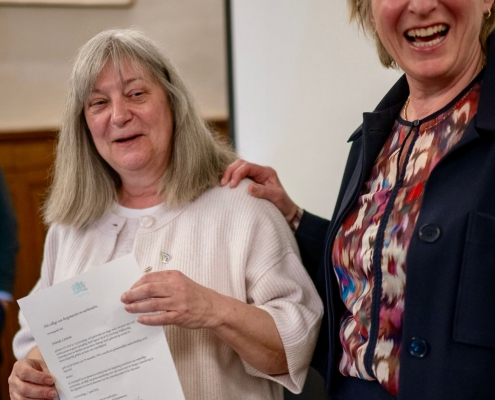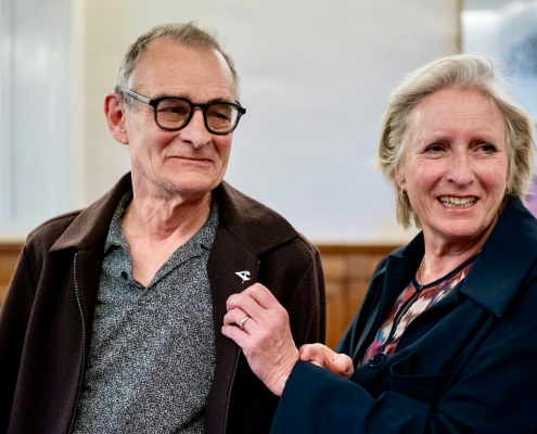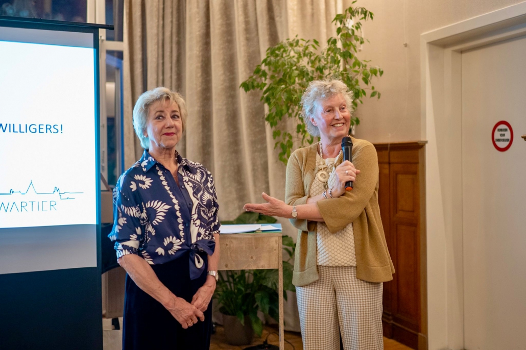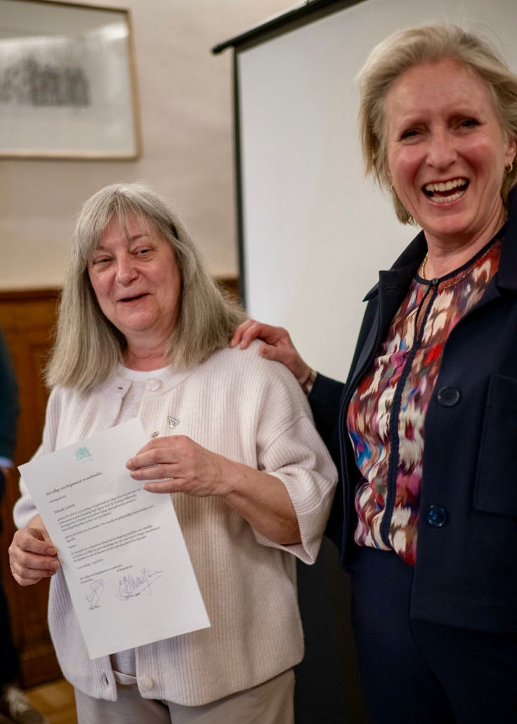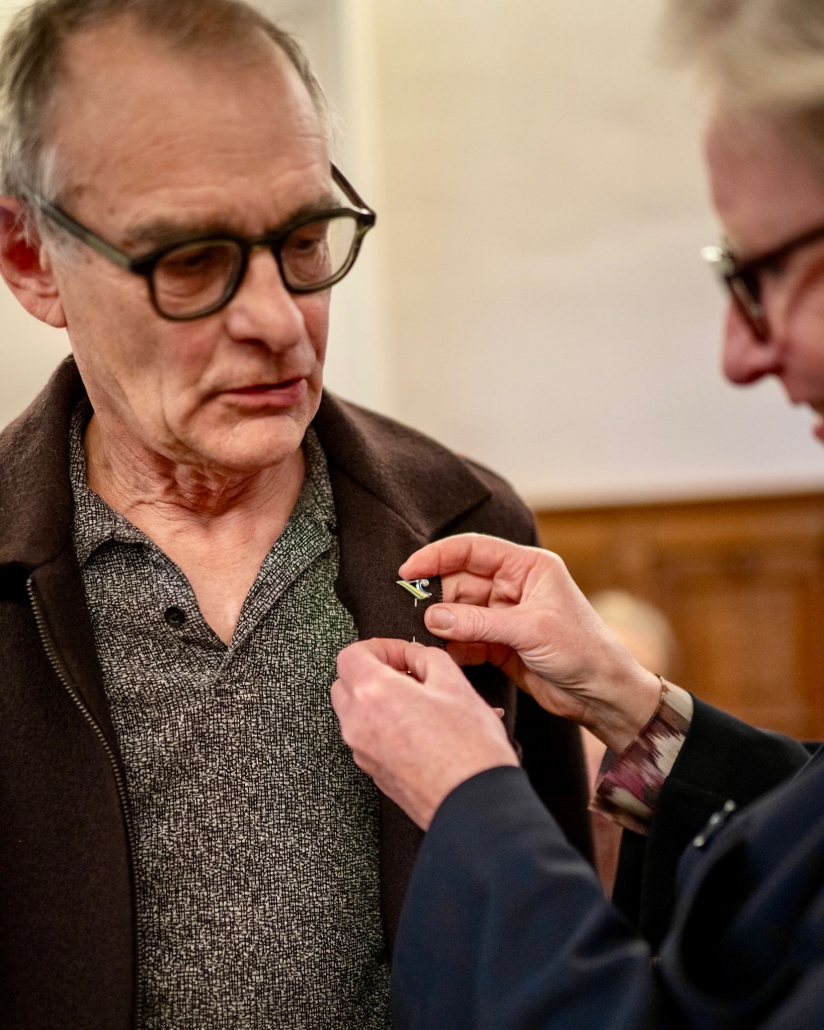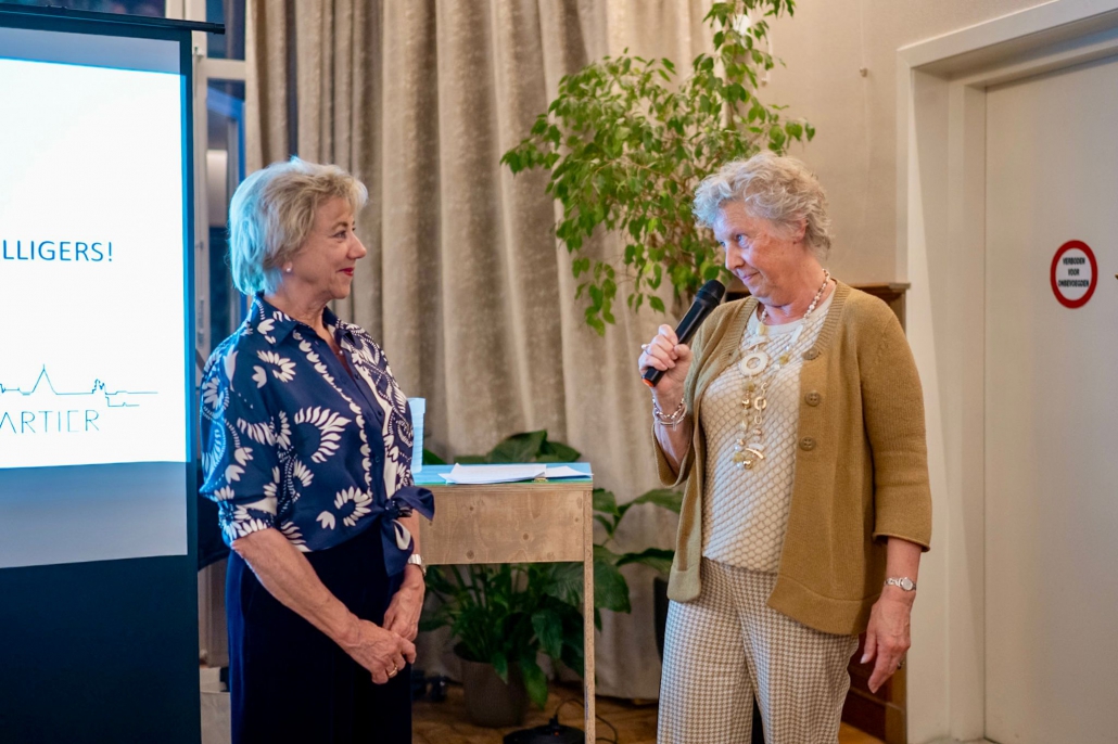 Ook Jolanda Letterie ontving uit handen van Mendy van Veen de Haagse Stadsspeld. In haar speech belichtte zij Jolanda’s jarenlange, onvermoeibare inzet voor het Statenkwartier: als voorzitter van het Buurtpreventieteam sinds 2011, als bestuurslid van het Wijkoverleg, en als drijvende kracht achter talloze buurtactiviteiten. Warm, vasthoudend en altijd verbindend — een welverdiende erkenning.