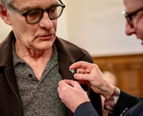 Mendy van Veen, directeur stadsdeelkantoor Scheveningen, reikte de Haagse Stadsspeld uit aan Maarten Ruijters. In haar speech typeerde zij hem als iemand die zijn liefde voor architectuur en het Statenkwartier wist om te zetten in concrete inzet voor de wijk — onder meer als mede-oprichter van de BAS. Rebels wanneer het moet, behulpzaam waar het kan: een terechte waardering.