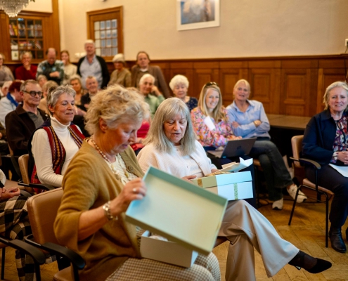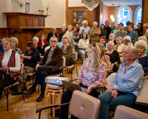 Voorzitter Marjolein de Jong opende de vergadering in de Salon van het Couvéehuis met een introductie van het bestuur, een terugblik op het afgelopen jaar en een vooruitblik op wat komen gaat. (zie presentatie)