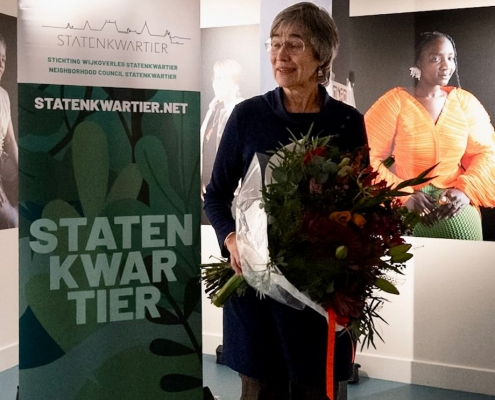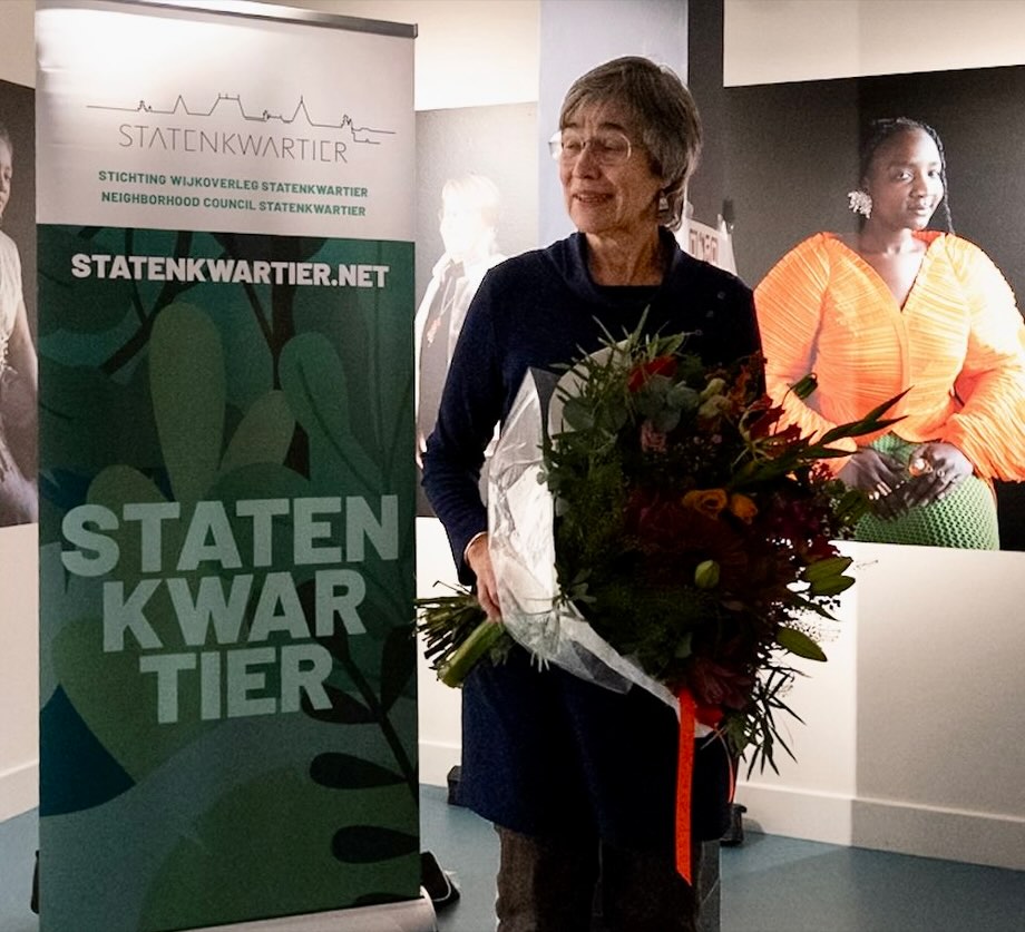 Als blijk van grote waardering voor haar 6,5 jaar toegewijde inzet als voorzitter van de BAS (Bescherming Architectuur Statenkwartier) ontving Marja Langenberg een mooie bos bloemen. Haar betrokkenheid en deskundigheid hebben veel betekend voor het behoud van het karakter van onze wijk.