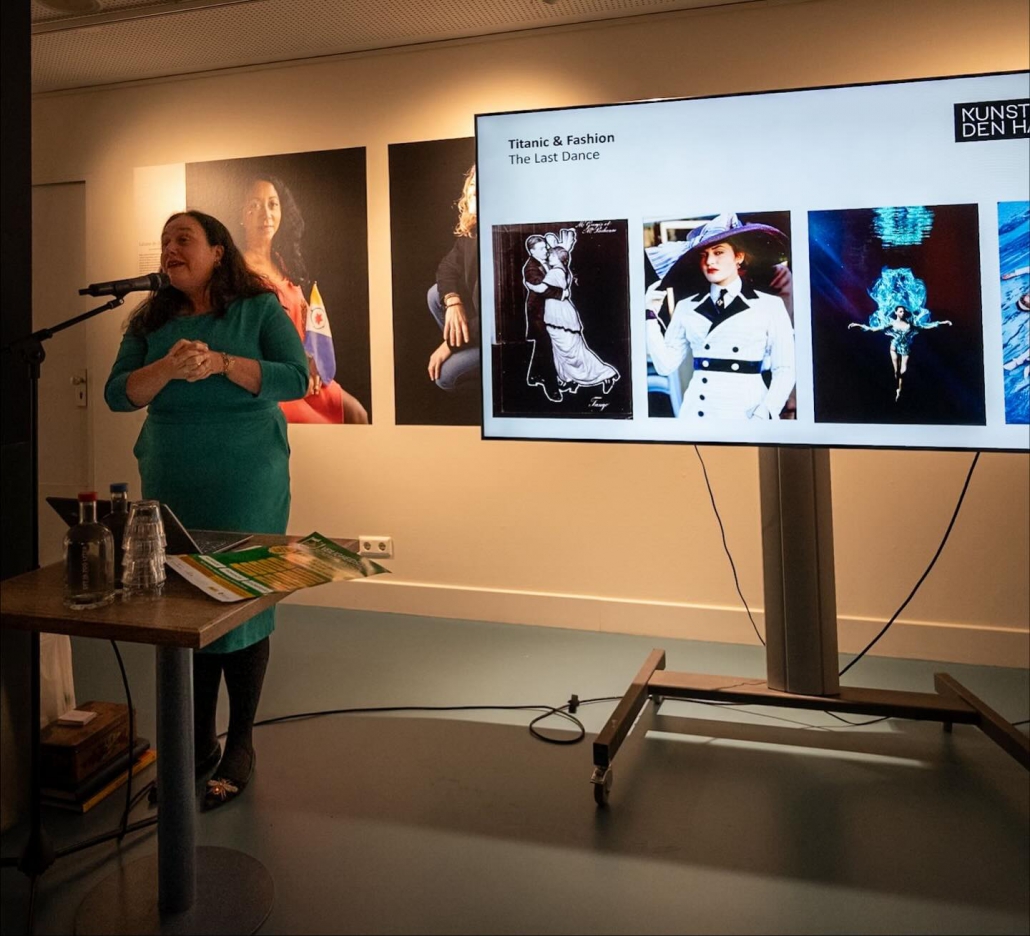 • Madelief Hohé, modeconservator van het Kunstmuseum, nam de aanwezigen mee achter de schermen van het maken van de tentoonstelling Titanic & Fashion. (zie presentatie)