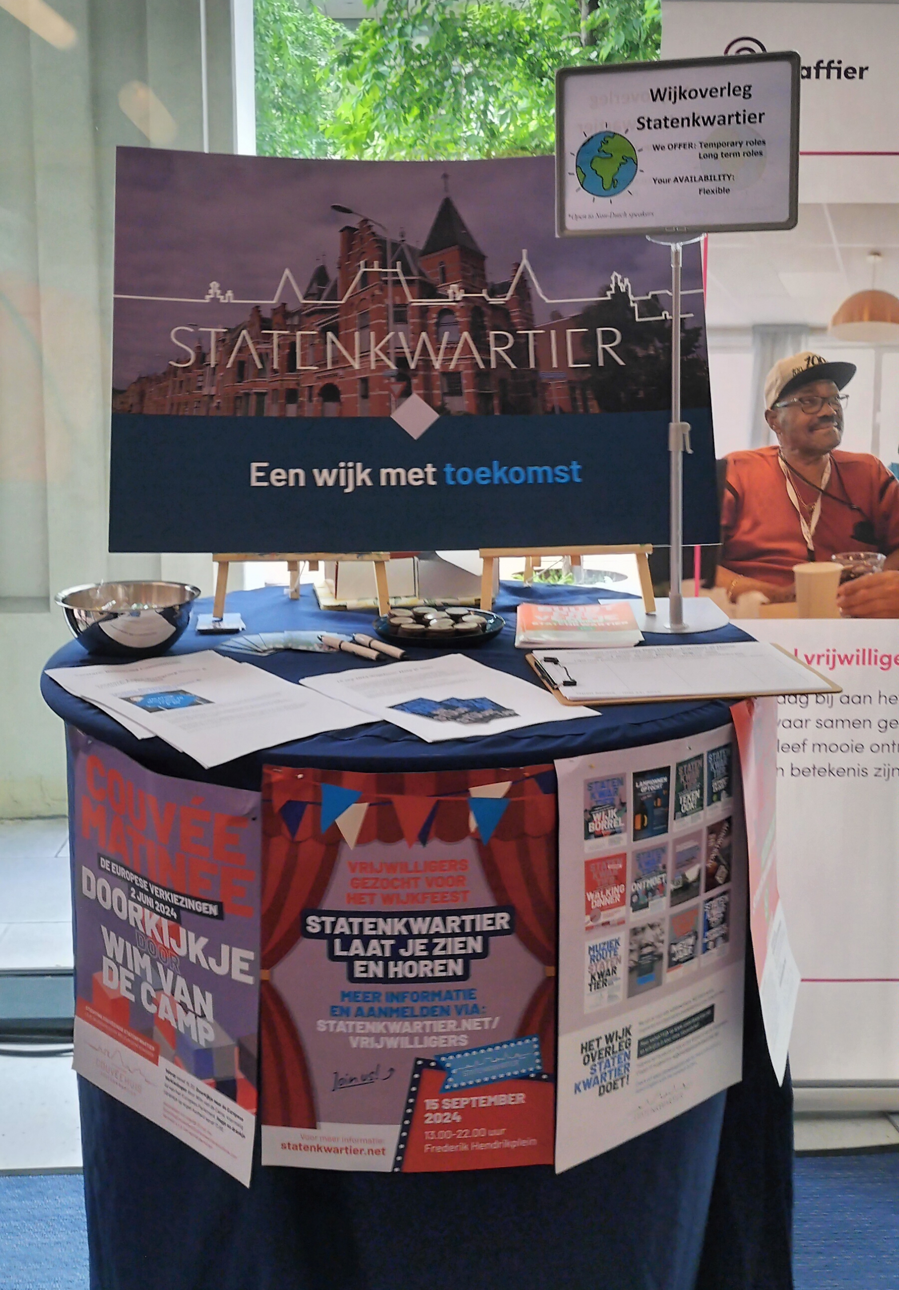 Op 11 mei was het zover: het wijkoverleg nam deel aan de bruisende vrijwilligersmarkt georganiseerd door PEP Den Haag in het prachtige Amare. Het wijkoverleg is volop in beweging en altijd op zoek naar enthousiaste bestuursleden, werkgroepleden en vrijwilligers om samen onze wijk nog mooier en leefbaarder te maken.